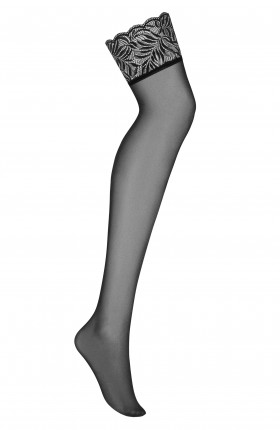 Czarne pończochy Contica. Koronkowe wykończenie – piękny wygląd nóg. Delikatny, prześwitujący materiał. Pończochy nie są samonośne. Elastyczna siateczka.