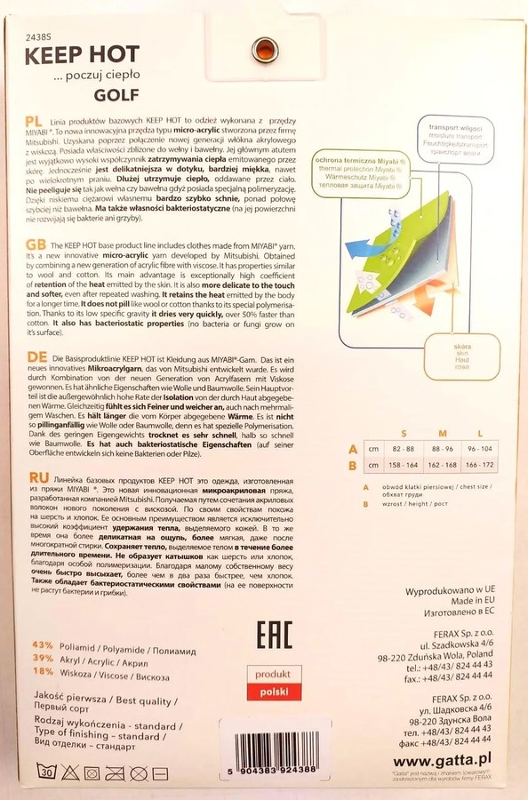 Skład: 43% poliamid, 39% akryl, 18% wiskoza