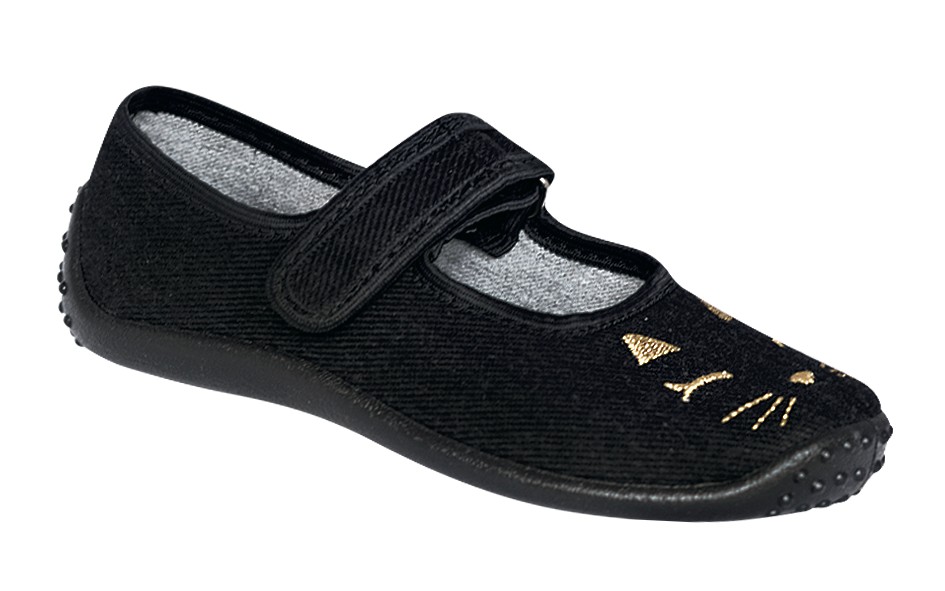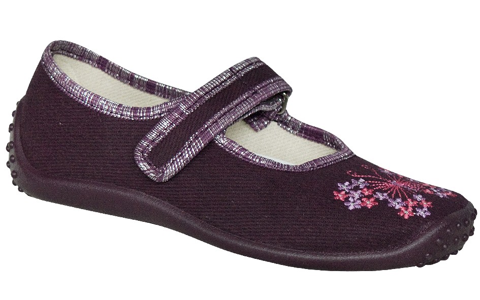 Obuwie dziewczęce wykonane z kolorowej tkaniny zapinane na rzepa ozdobione kolorową aplikacją. Wkładka wykonana z tkaniny bawełnianej oraz elastycznej pianki. Pianka zawiera węgiel aktywny. Węgiel aktywny pochłania nieprzyjemne zapachy zapewniając stopie uczucie świeżości. Dane techniczne: usztywniana piętka, elastyczna podeszwa, wnętrze cholewki tkanina bawełniana, materiał oddychający, wkładka.