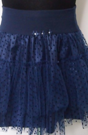 Efektowna spódnica LOLA idealnie nada się na uroczyste okazje! Spódnica z podwójnym tiulem ozdobionym delikatnymi kropeczkami. Spód wykonany z nieprześwitującego, śliskiego materiału. Komfortowy pas z ozdobną kokardką lub kwiatkami na boku.