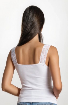 ● z grubymi koronkowymi ramiączkami i koronkowym dekoltem