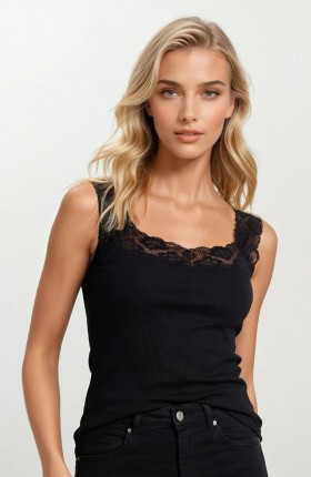 ● z grubymi koronkowymi ramiączkami i koronkowym dekoltem