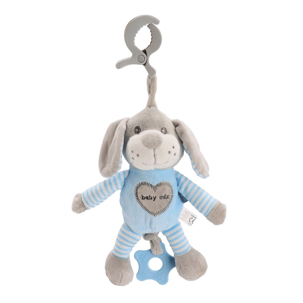 Piękny kolorowy pluszak Baby Mix dla maluszków. Po rozciągnięciu zabawka gra przyjemną melodię, która pomaga maluszkowi zasnąć. W jednej nodze ukryty jest gwizdek, w drugiej grzechotka. Zabawka posiada klips do mocowania np. do wózka, fotelika czy łóżeczka. Wymiary 25 cm.