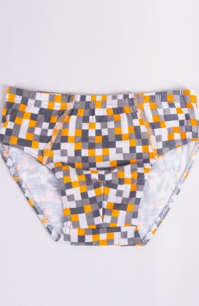 Wzorzyste chłopięce slipy o klasycznym kroju zostały wykonane z wysokiej jakości bawełny. W pasie znajduje się komfortowa gumka w tunelu. Slipy w odcieniach szarości i żółtego zapakowane w foliowy woreczek. Sprzedaż całym opakowaniem (3szt.). Cena za 1 KPL.