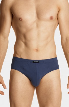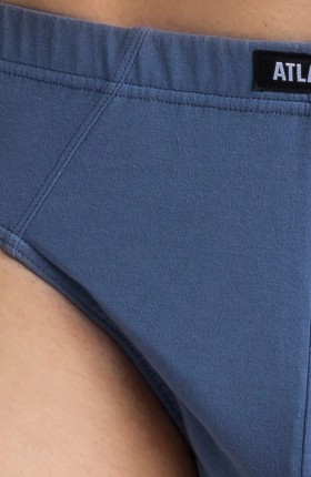 W opakowaniu znajdują się trzy sztuki slipów męskich gładkich o różnej kolorystyce. Slipy mają klasyczny krój - odznaczają się średniej wysokości stanem oraz dość mocno zabudowanymi bokami. W talii majtki wykończone są miękką i niezwykle komfortową gumą wewnętrzną (tzw. tunelową). Zastosowano w nich profilujące szwy, dzięki którym bielizna perfekcyjnie dopasowuje się do ciała. Slipy wykonane są ze 100% bawełny - przyjemnej w dotyku, odpornej na wysokie temperatury i wytrzymałej w użytkowaniu. Dzianina ma także zdolność wchłaniania wody, zapobiega tym samym dyskomfortowi jakim jest nadmierne pocenie się ciała.