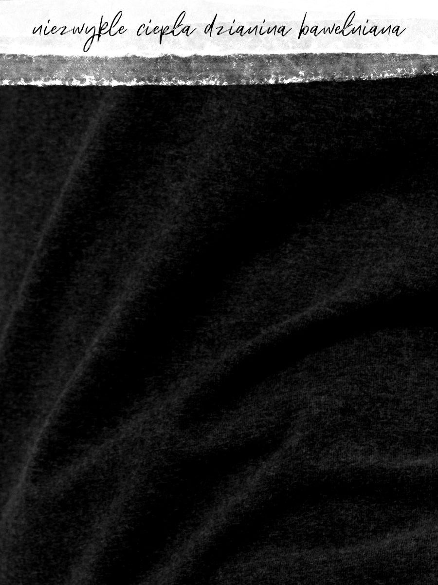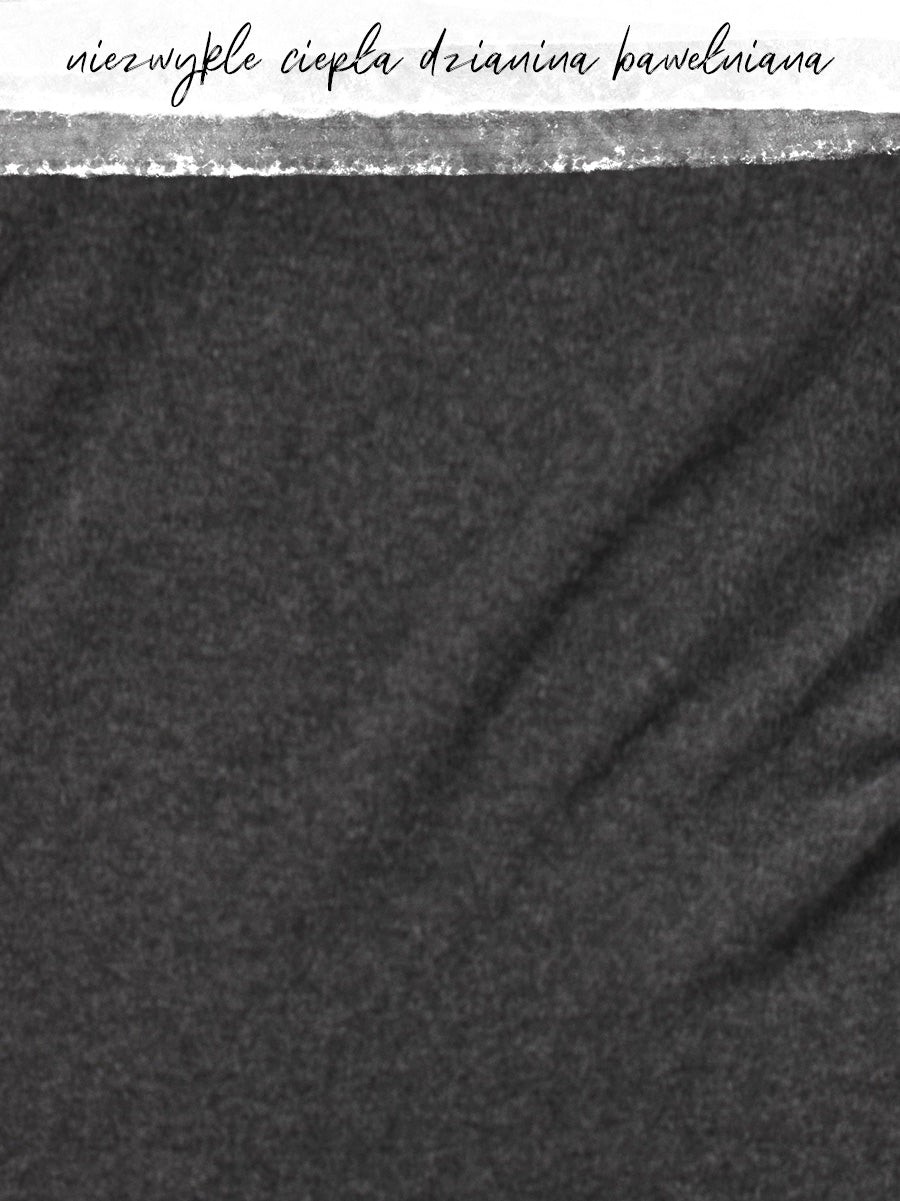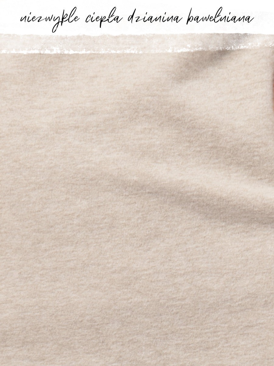 Skład: 95% bawełna, 5% elastan, dzianina drapana z obu stron, wysokie odczucie ciepła
