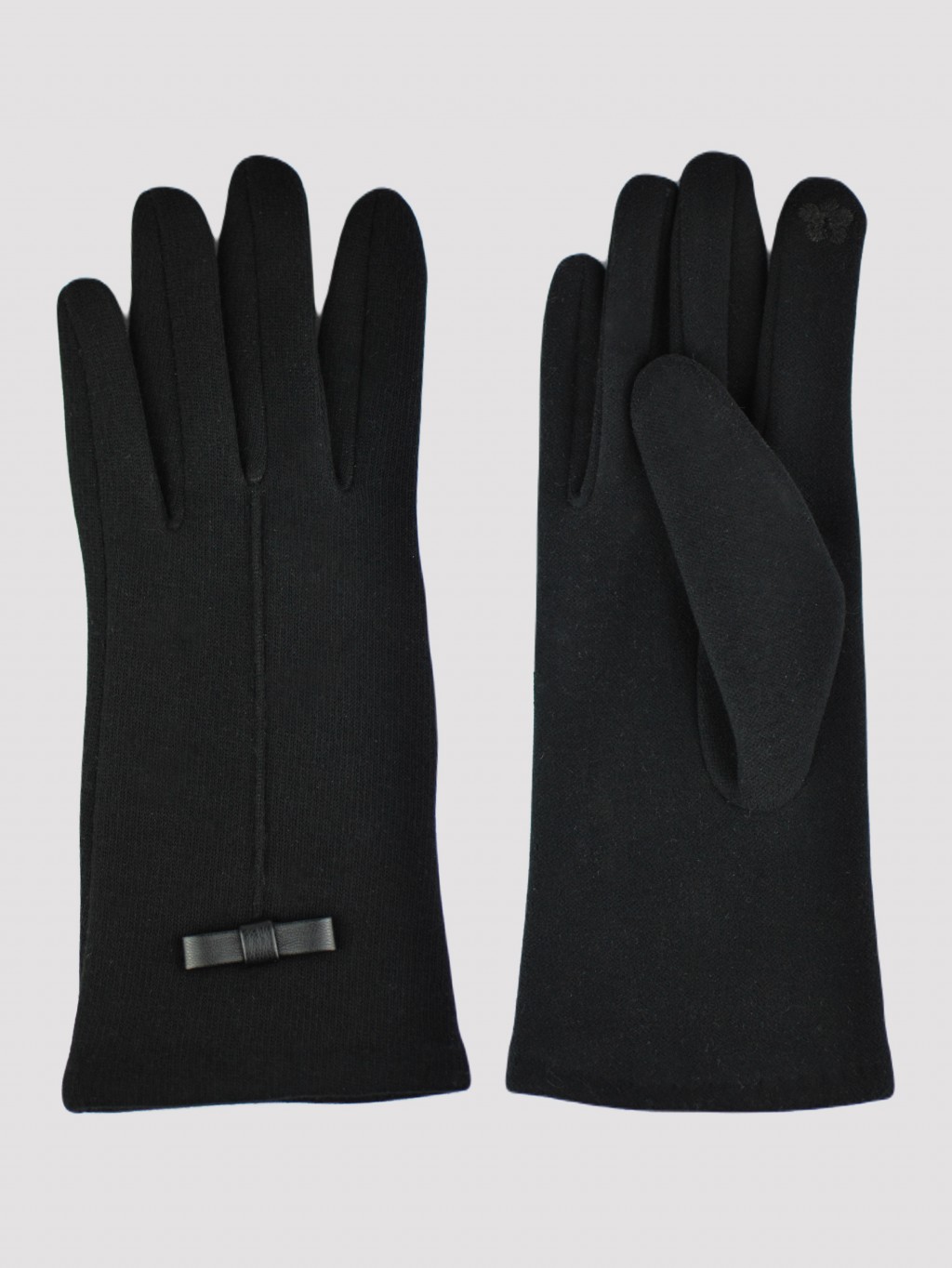 Eleganckie a zarazem wygodne damskie rękawiczki dla każdej miłośniczki klasyki i nieprzemijającej czerni. Rękawiczki wykonane zostały z miłego w dotyku materiału, który zapewnia ciepło podczas chłodnych jesienno-zimowych dni. Przód z delikatnym zdobieniem oraz kokardką. Sprzedaż rękawiczek całym opakowaniem - 6 sztuk. Cena dotyczy 1 pary.