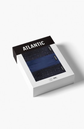 ● mają niską talię, w której zaznaczone są nieuciskającą ciała gumą wewnętrzną z logo ATLANTIC