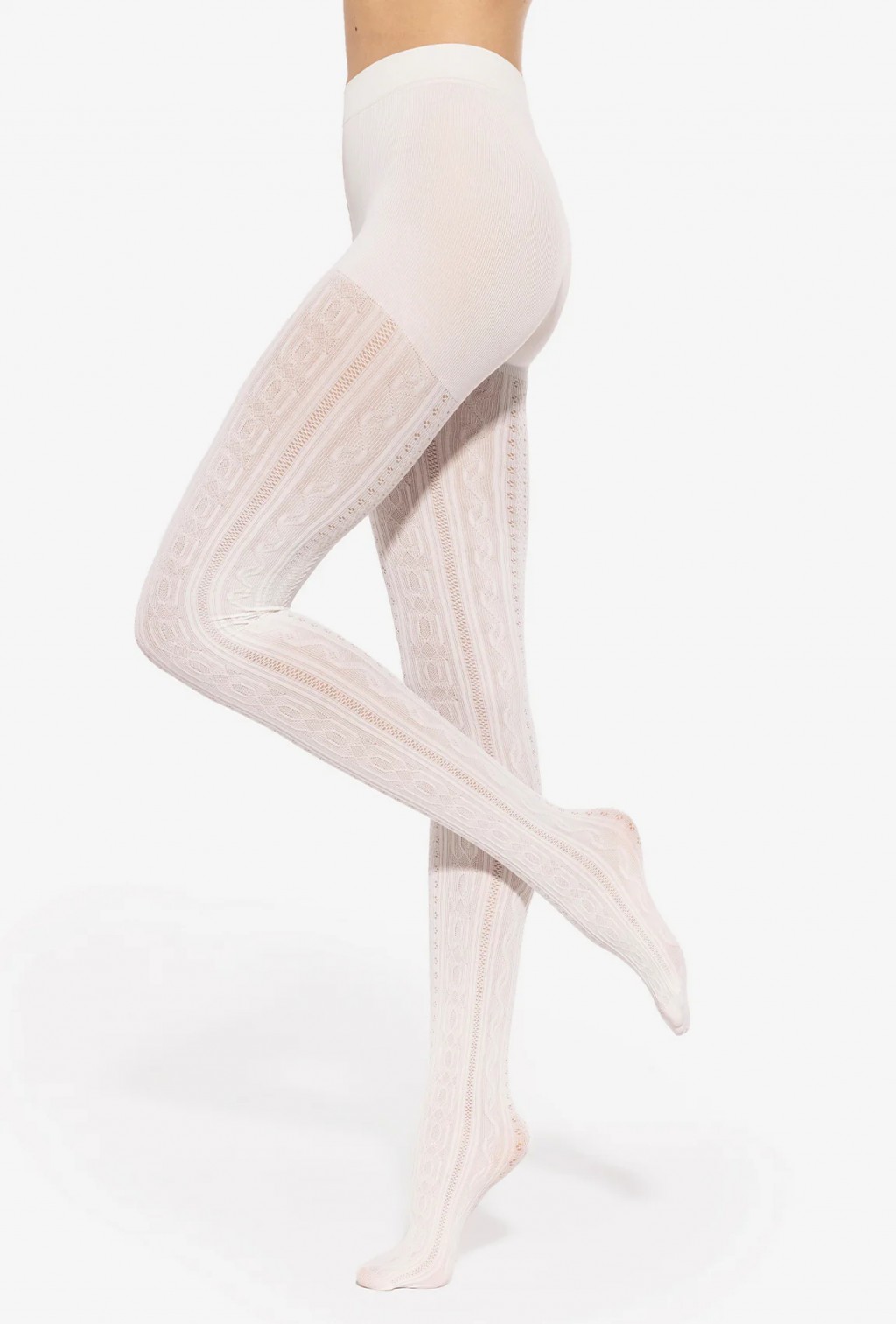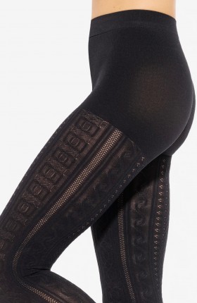 ● wzór biegnący pionowo wzdłuż nóg nadaje im smukłości