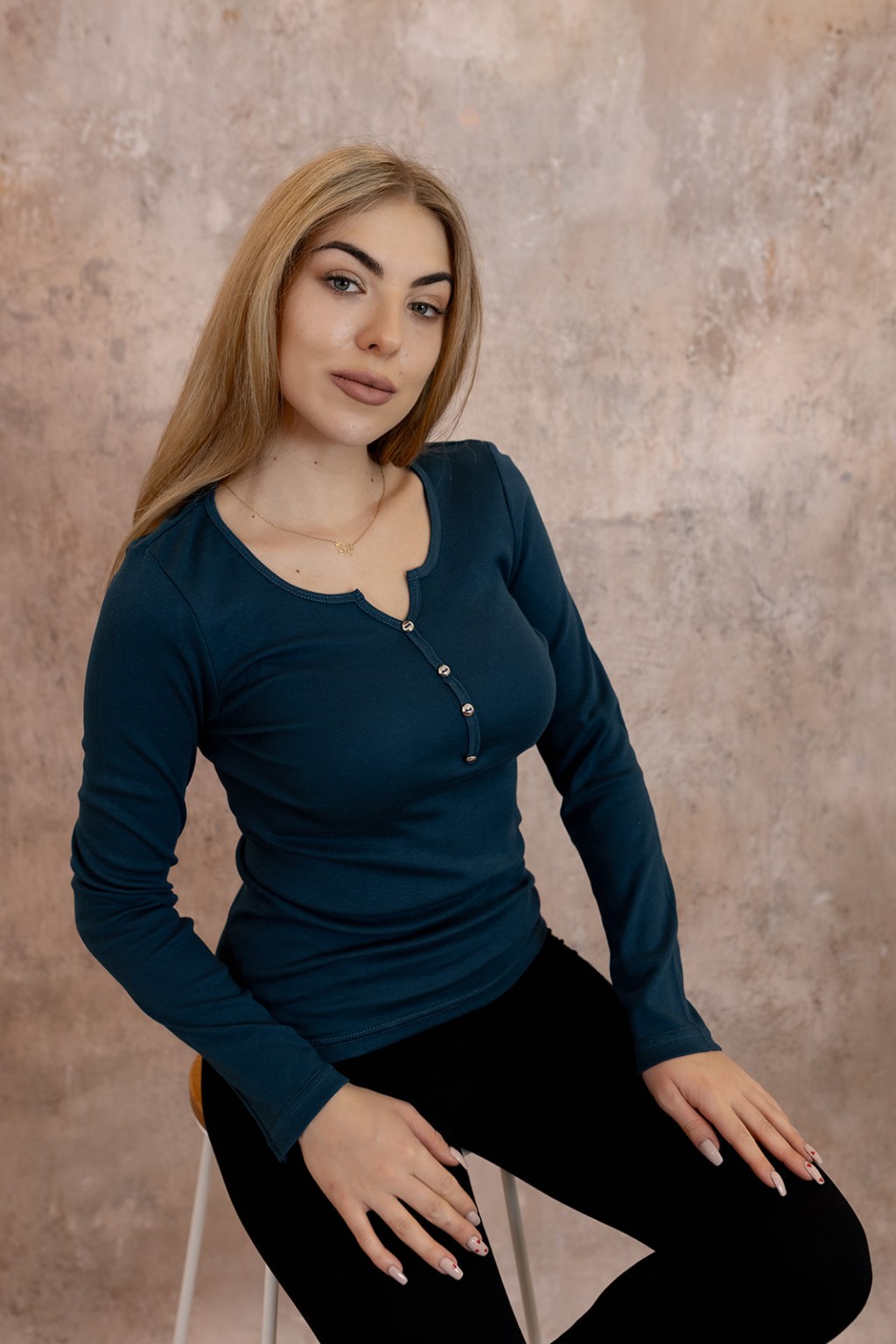 ● dekolt polo oraz cztery ślicznie zdobiące guziki poniżej dekoltu