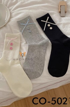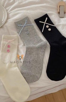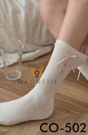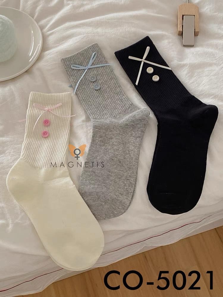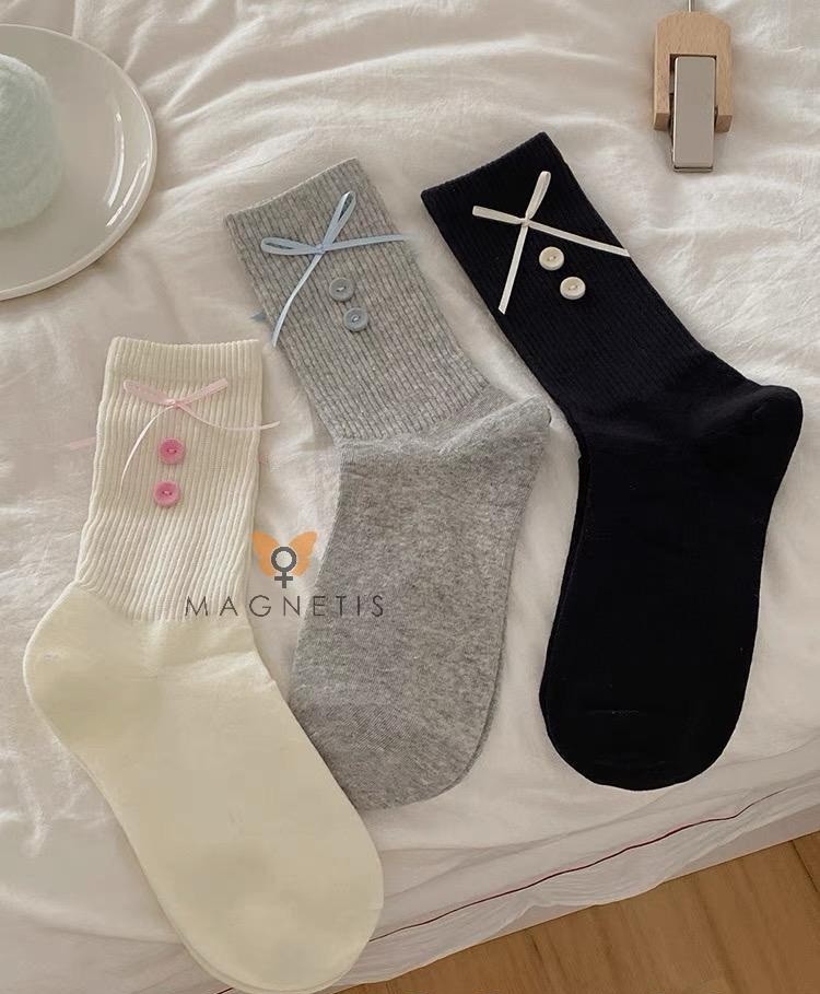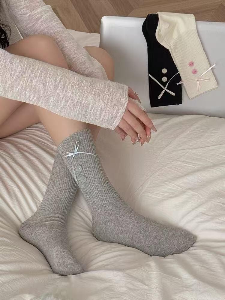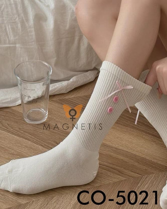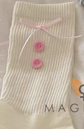 ● wydłużona prążkowana cholewka ozdobiona guzikami i kokardką