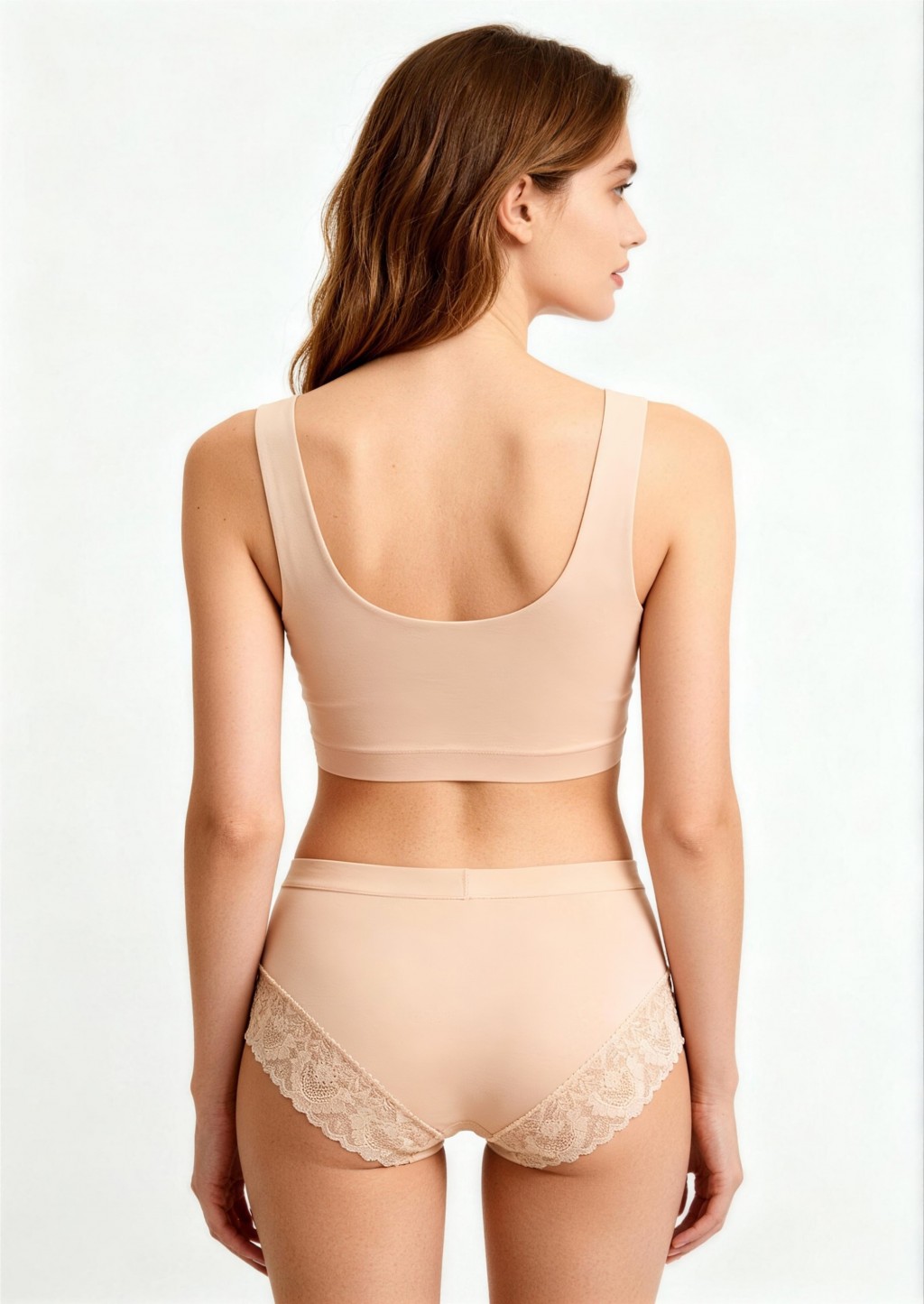 ● boki i nogawki z tyłu ozdobione szeroką koronką