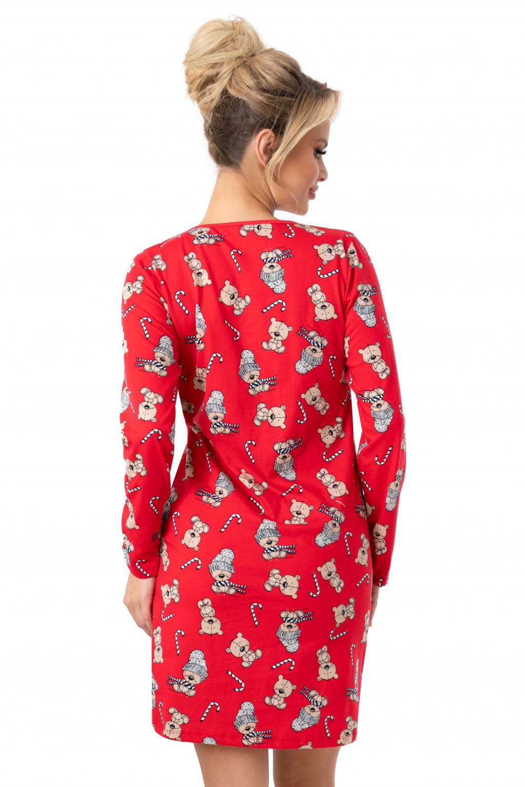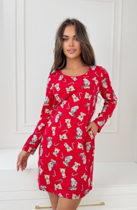● wzorzysta w świąteczne misie na czerwonym tle