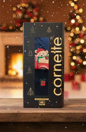 ● całość zapakowana jest w eleganckie, świąteczne pudełko w ciemnym kolorze, ozdobione złotymi choinkami