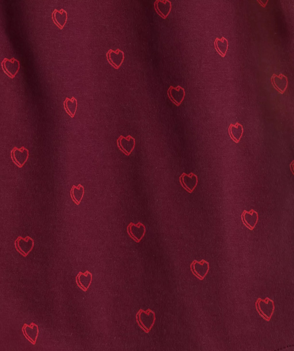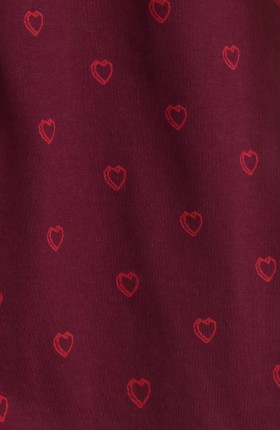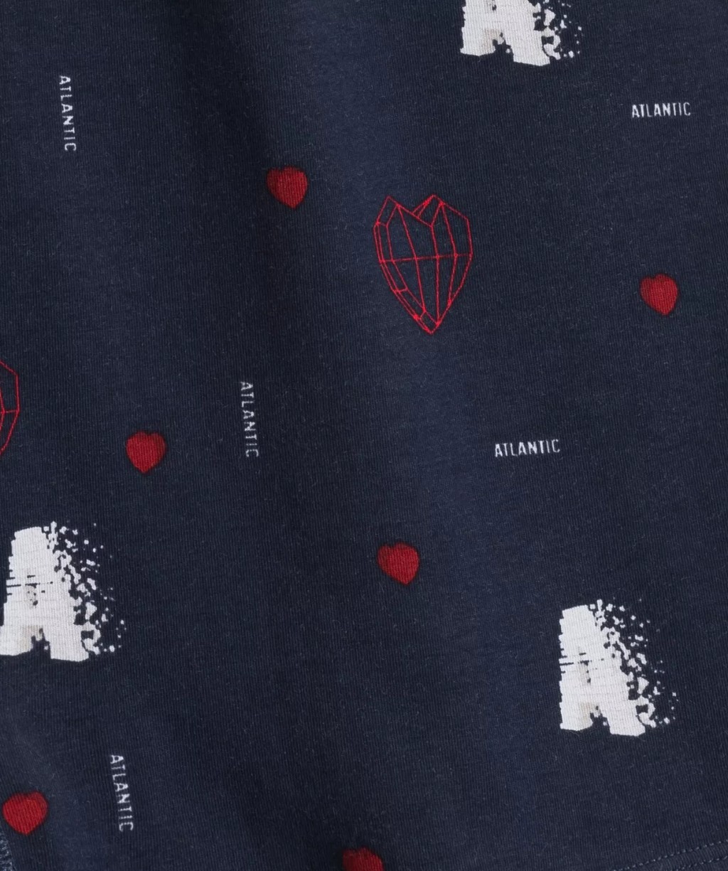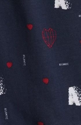 ● granatowe z nadrukiem w małe, czerwone serduszka i białe litery A oraz czerwone w niewielkie serca