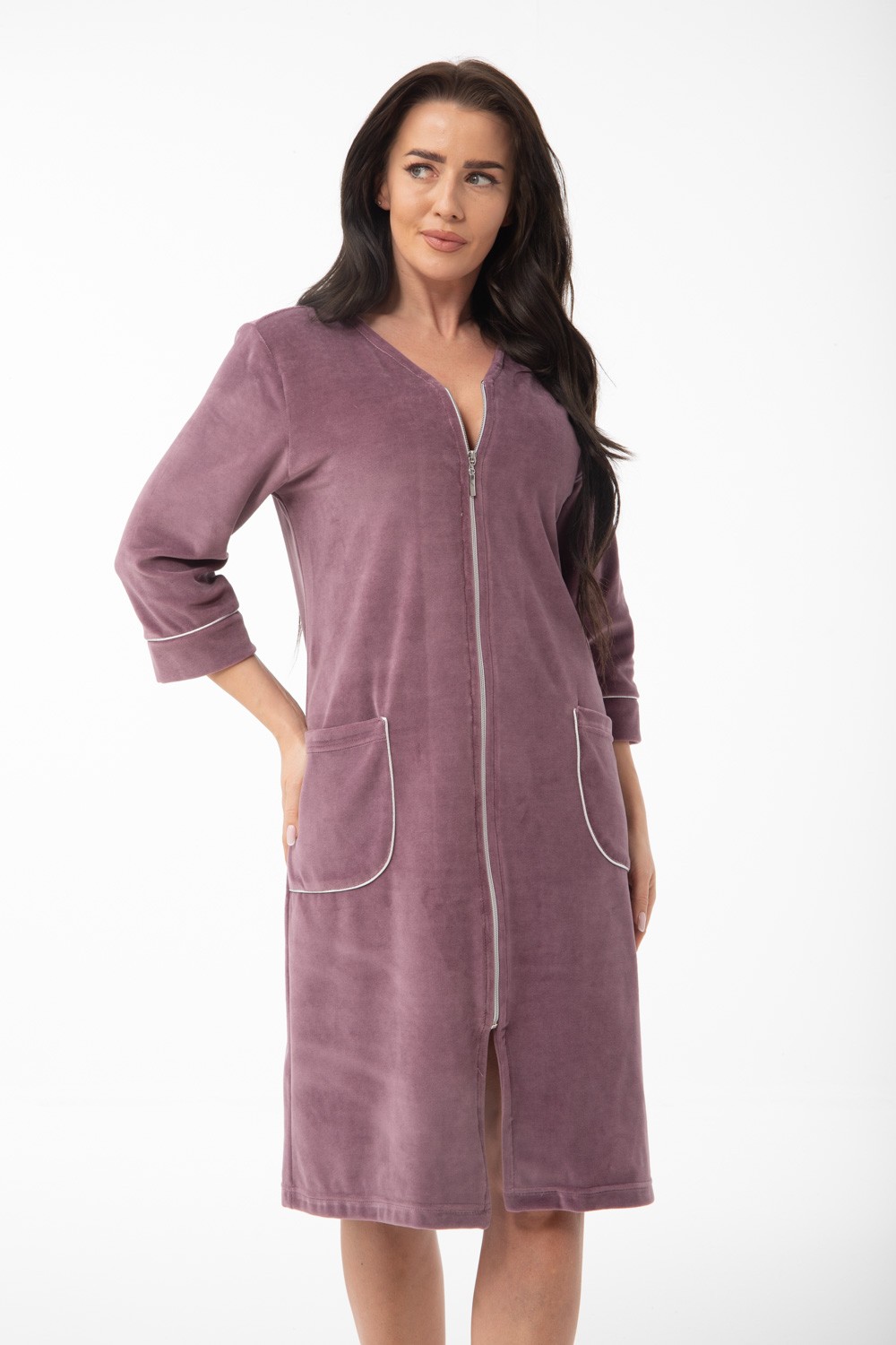 ● krótki damski szlafrok na zamek