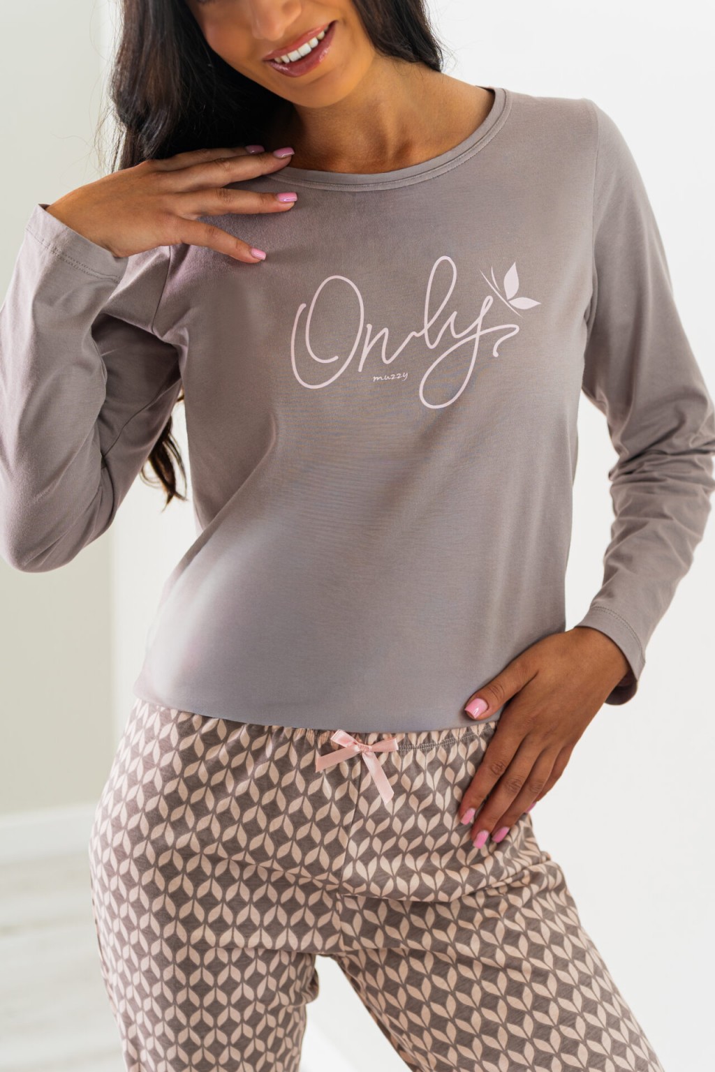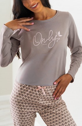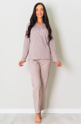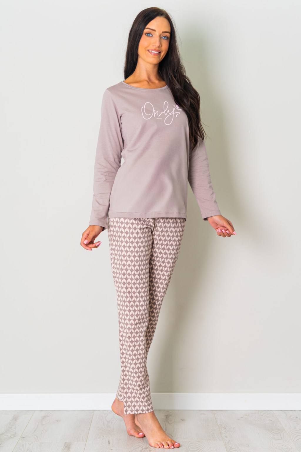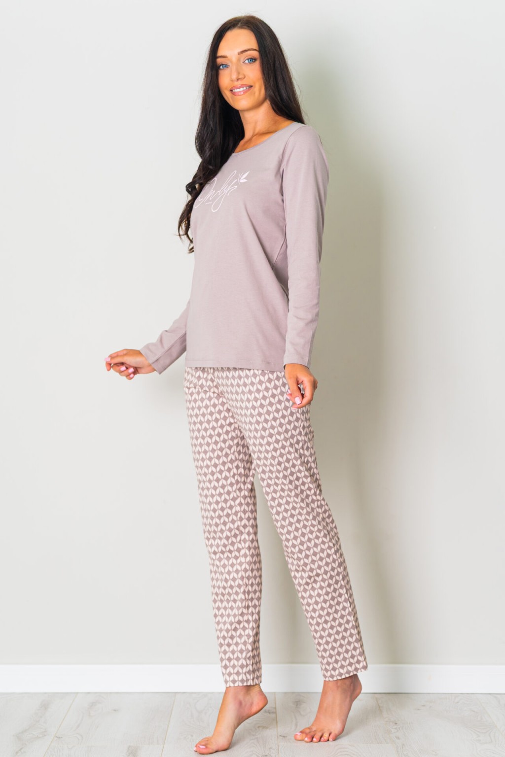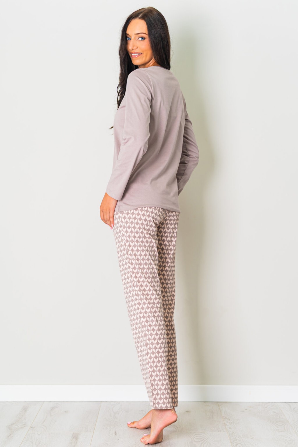 ● wygodne długie spodnie z gumą, w delikatny różowo-beżowy wzorek