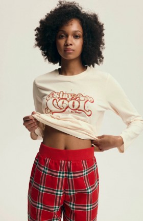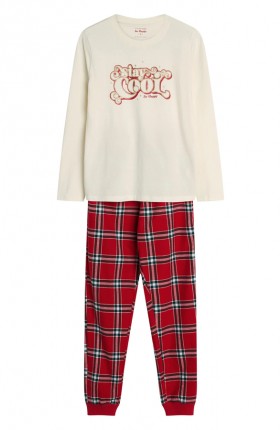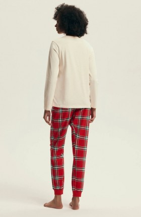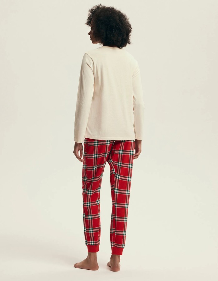● dół zestawu to flanelowe czerwone spodnie w klasyczną kratę