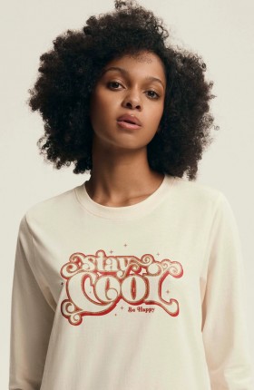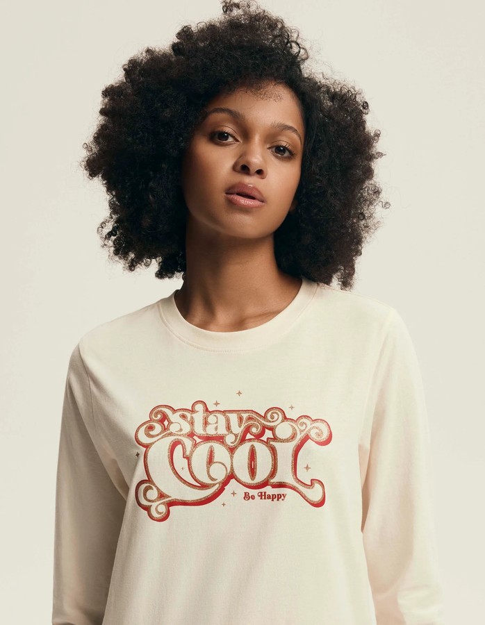 ● ozdobiona modnym nadrukiem ze złotym połyskiem „Stay Cool – Be Happy”