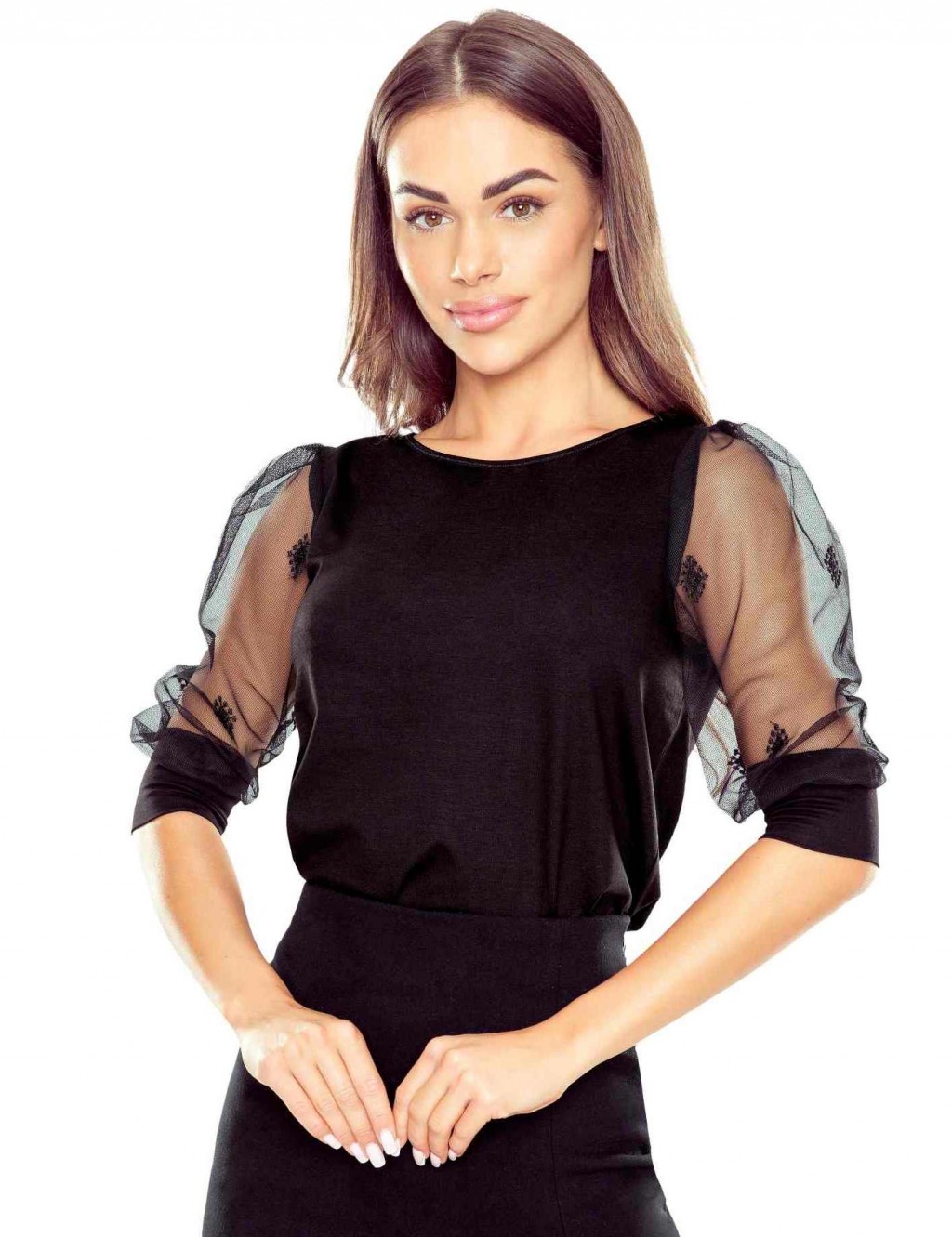 ● efektowne rękawy półprzezroczyste, bufiaste, wykonane z delikatnej siateczki (tiulu)