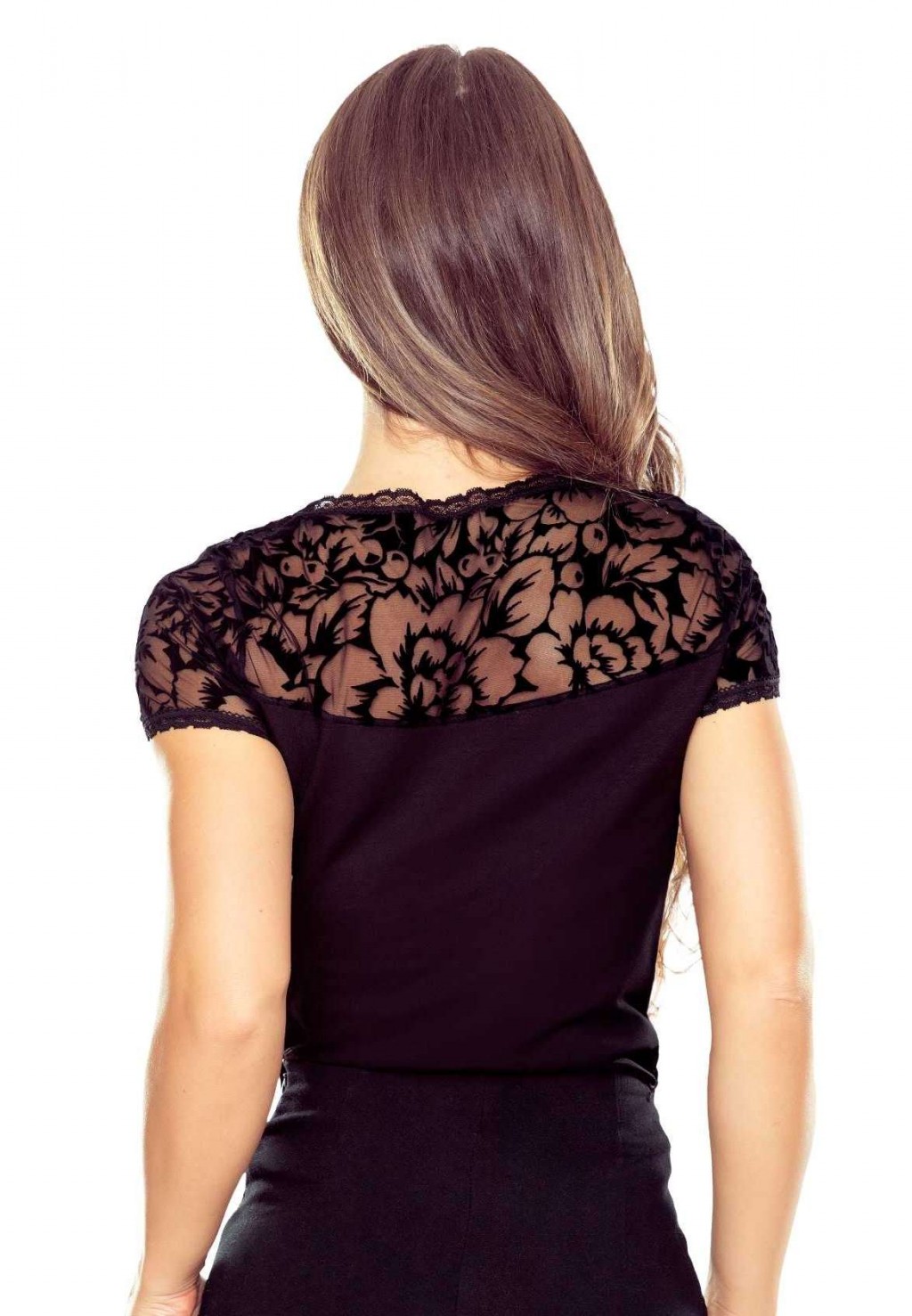 ● górna część oraz rękawy, wykonane z półprzezroczystej koronkowej siateczki