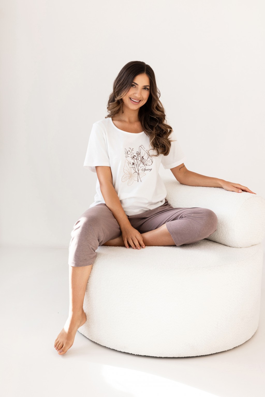 ● do kompletu melanżowe spodnie z nogawkami o długości 7/8