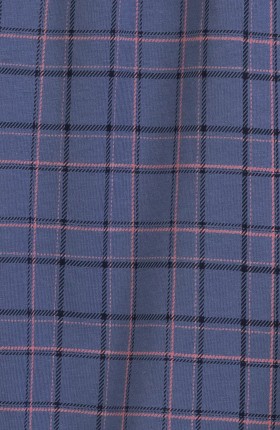 ● w kolorze granatowym i denimowym, nadruk w kratę