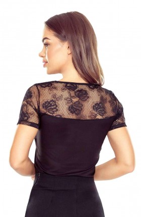 ● ramiona oraz górna część dekoltu wykonane z półprzezroczystej koronki ze wzorem róż