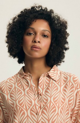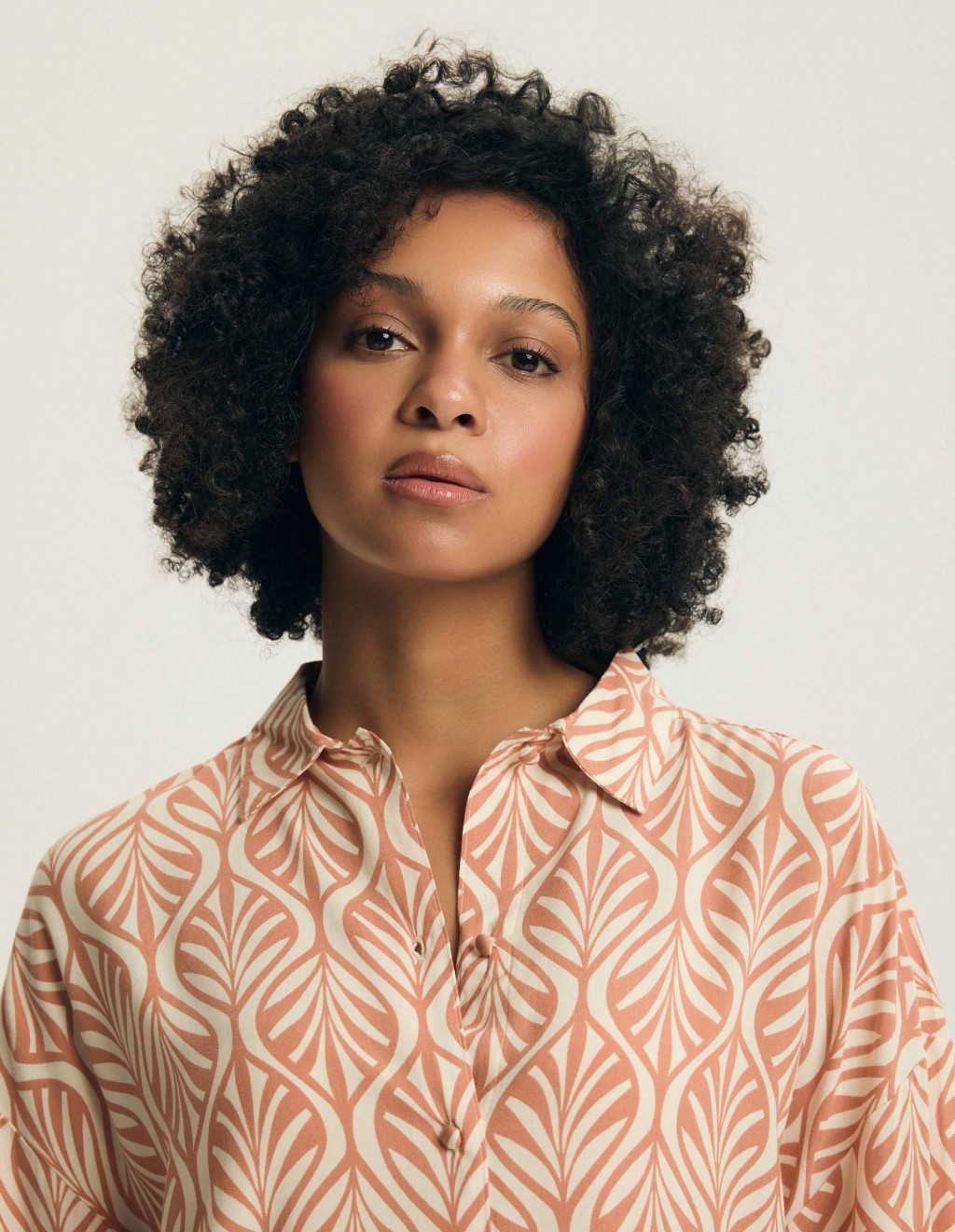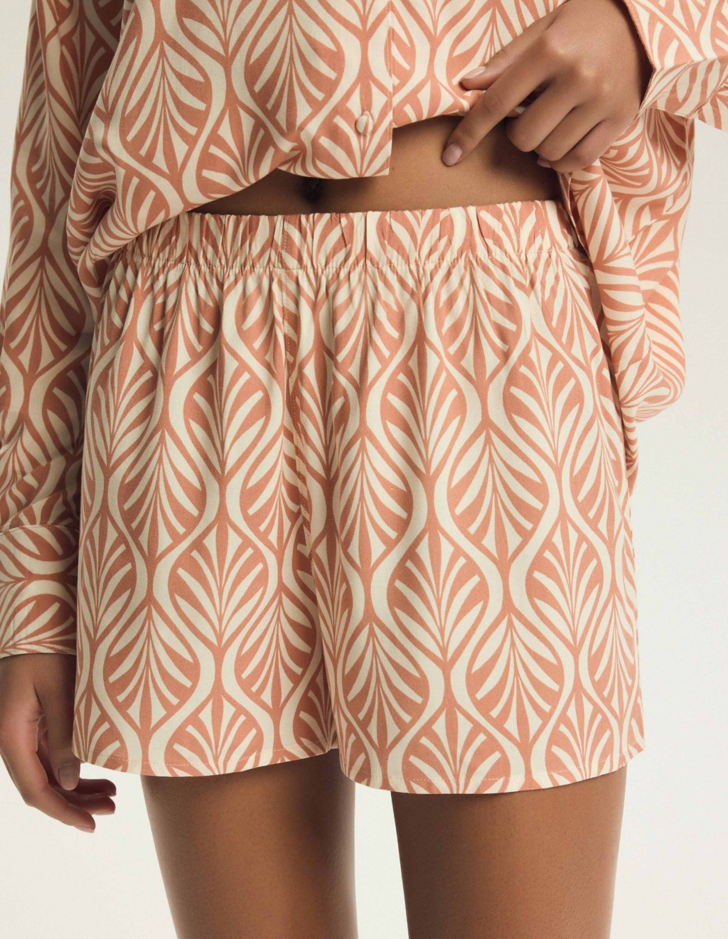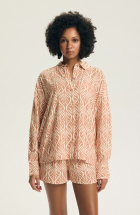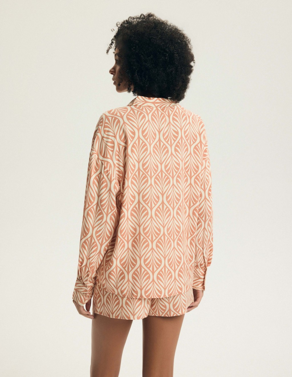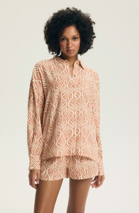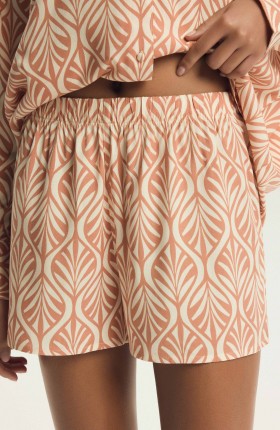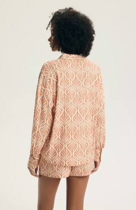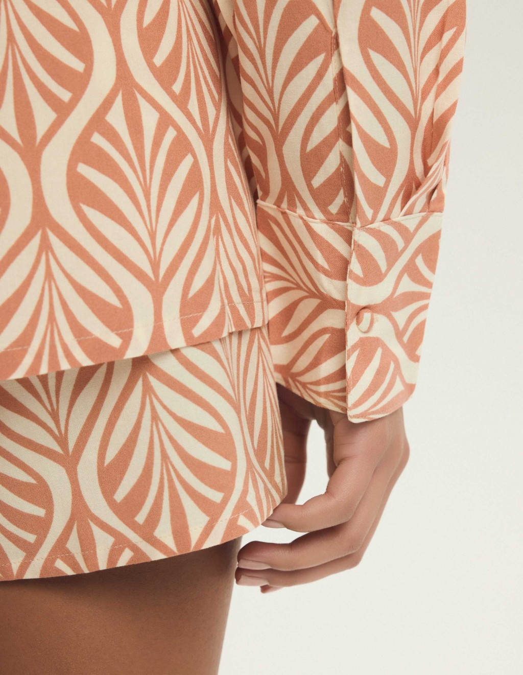 ● elegancki, geometryczno-roślinny wzór w odcieniach brzoskwini i ecru