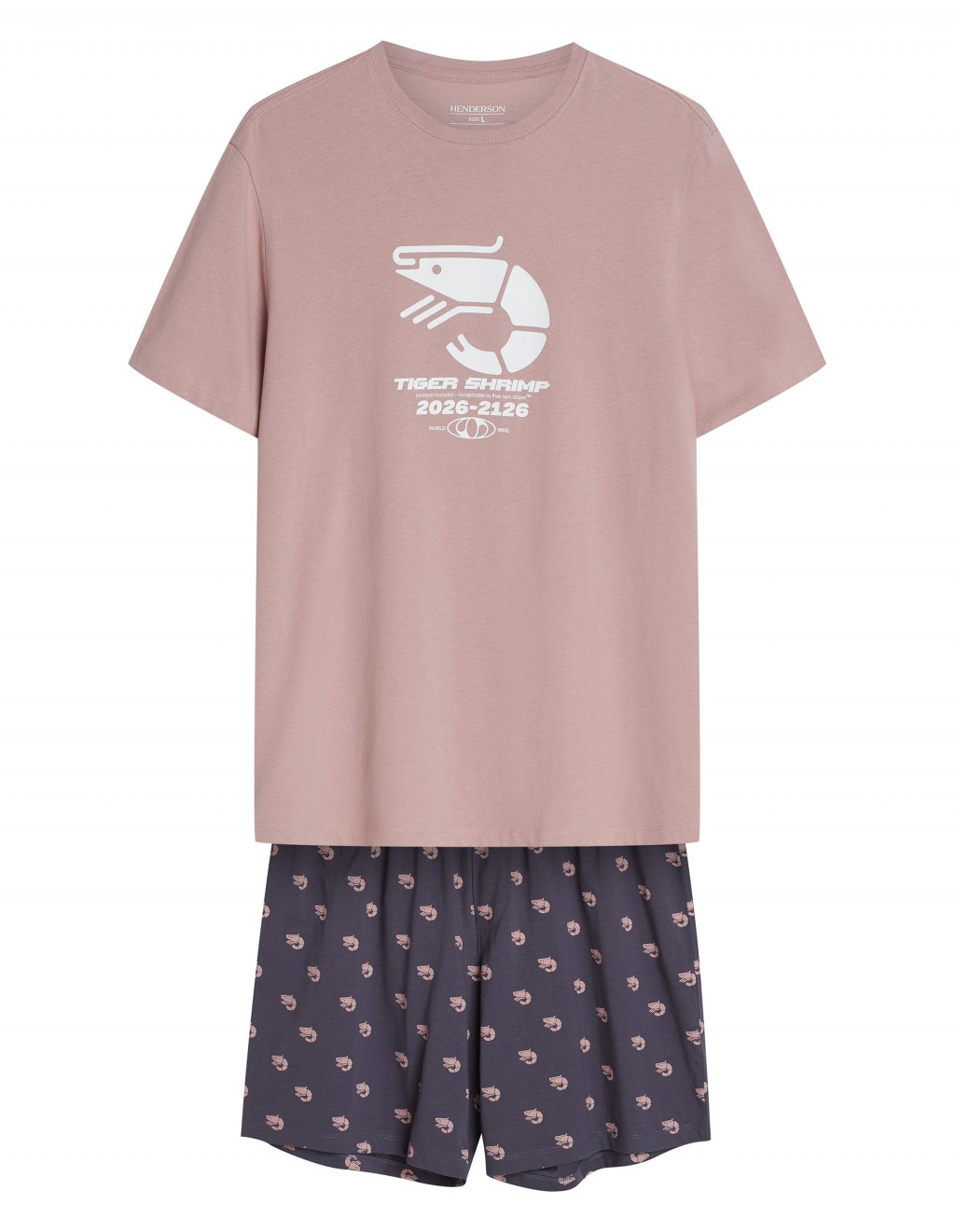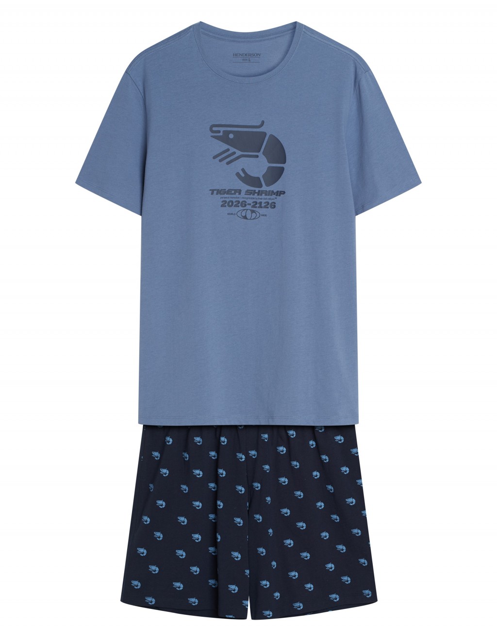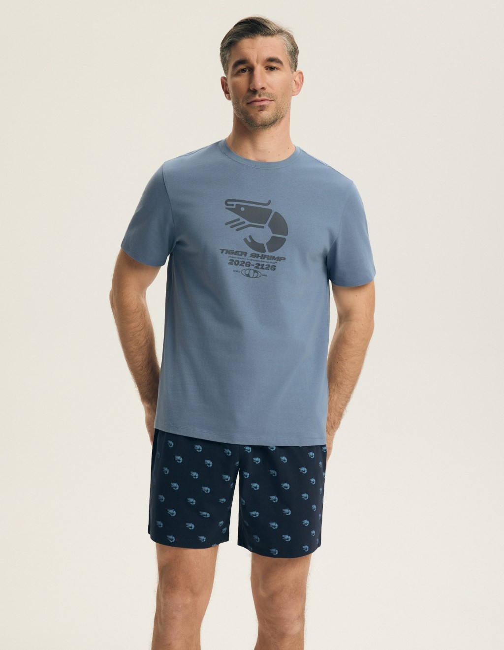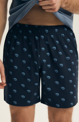 ● krótkie spodenki z drobnym, powtarzalnym motywem krewetek