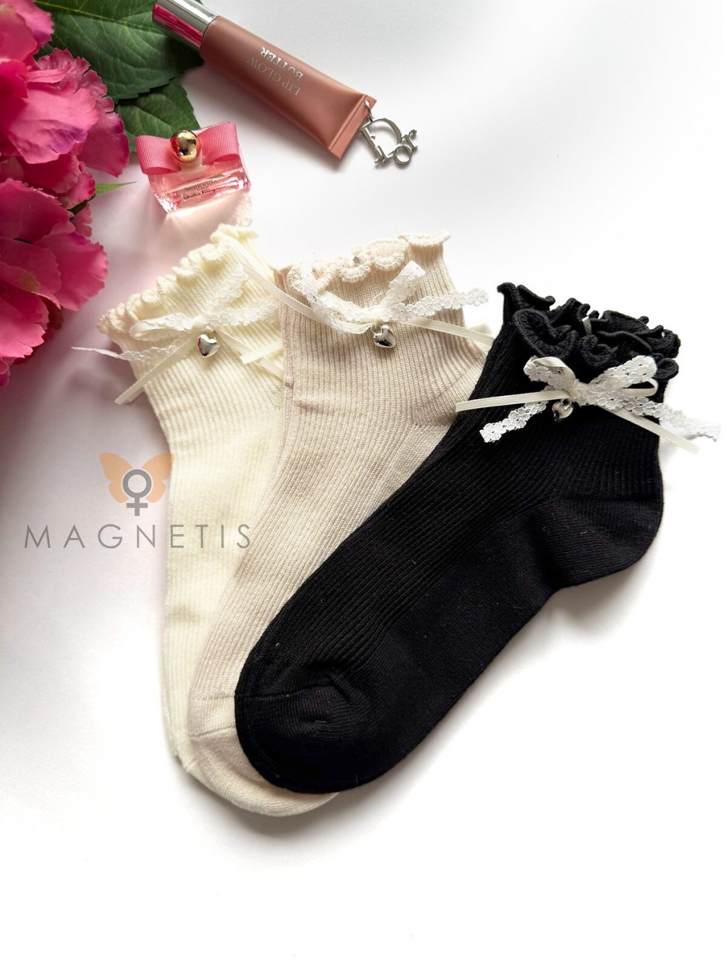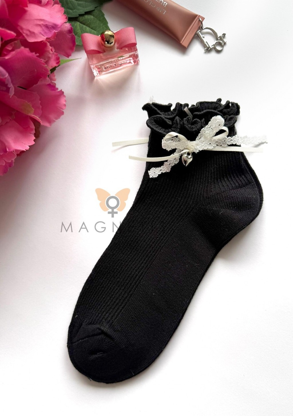 ● ściągacz zdobi koronkowa kokardka z serduszkiem