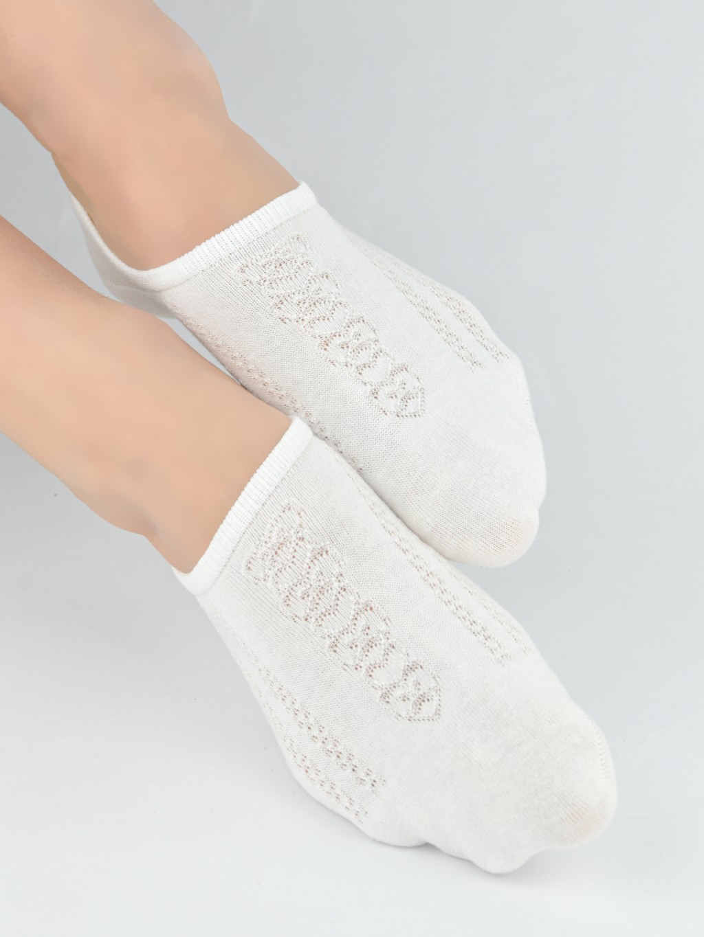 STOPKI DAMSKIE ST095 BAWEŁNA SERCA/MOTYL