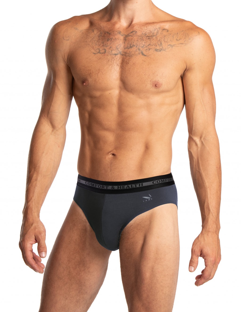 ● w pasie szeroka dwukolorowa guma zewnętrzna ozdobiona napisem Comfort & Health