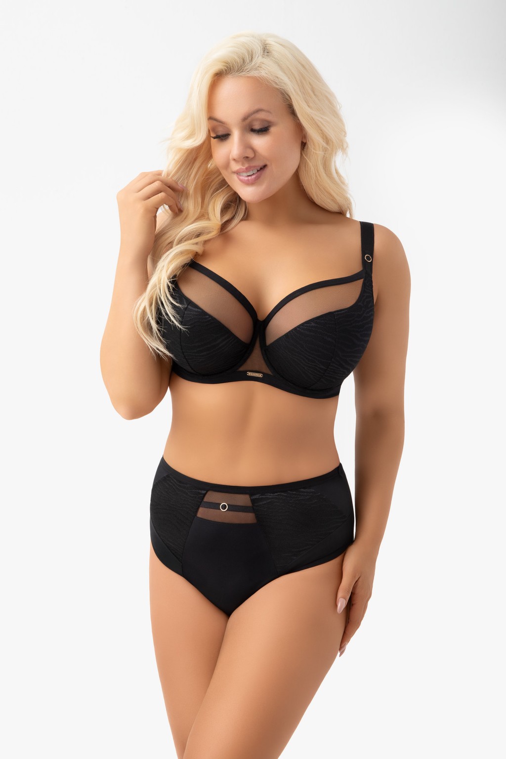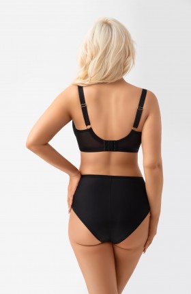 G020 LORI FIGI Figi wykonane z kryjącej mikrofibry z efektownymi wstawkami z żakardu oraz tiulu elastycznego. Tył wykończony poprzez podwinięcie krawędzi mikrofibry na płasko, co sprawia, że model nie odznacza się pod ubraniem. Metalowe elementy bez niklu w kolorze light gold – ozdobne kółko . Bawełniany kroczek dla pełnego komfortu.
