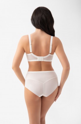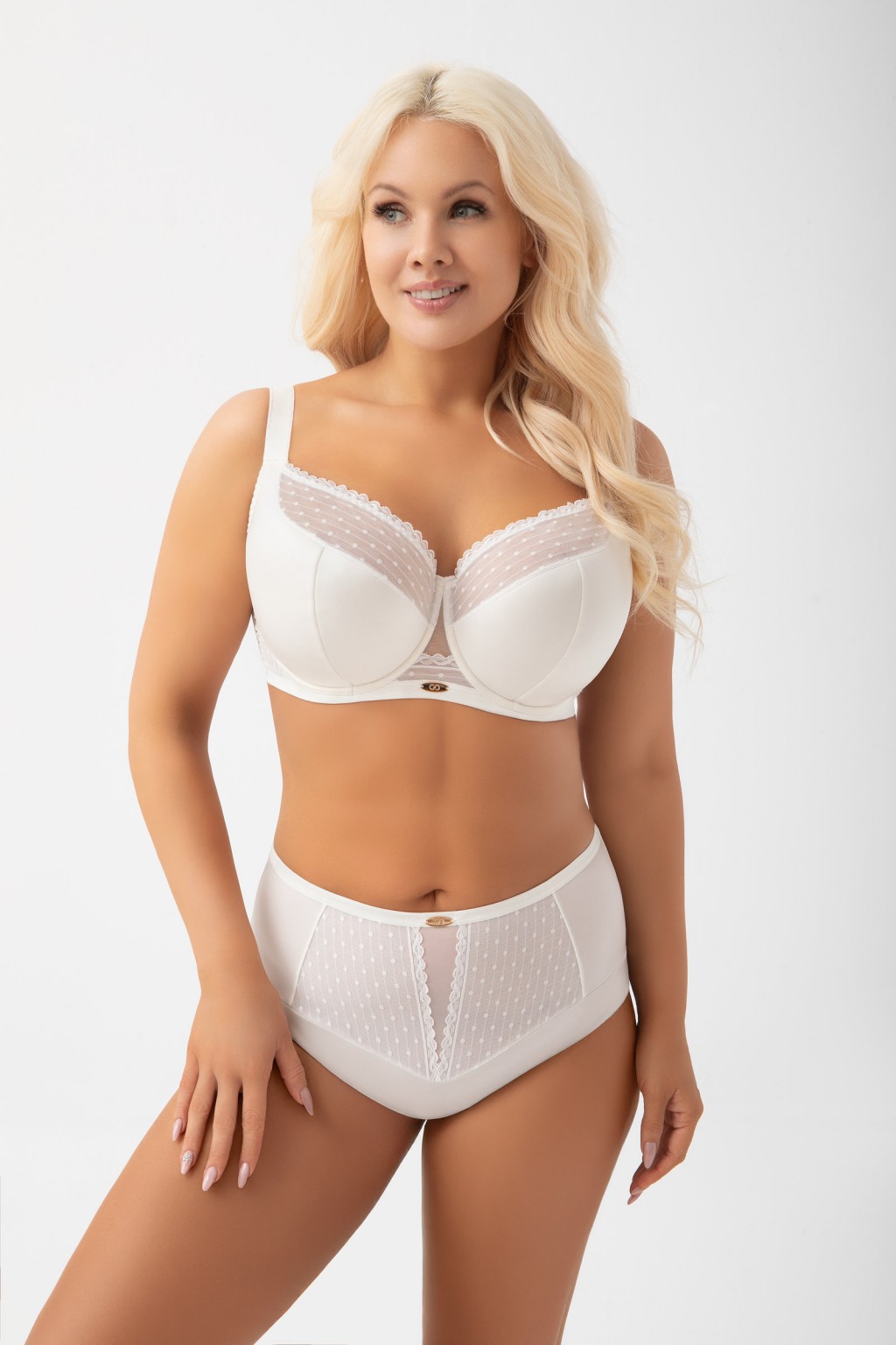 G021 DOTTI FIGI Wykonane z połączenia kryjącej mikrofibry, koronki oraz tiulu elastycznego. Tył majtek uszyty z tiulu elastycznego i wykończony na gładko, dzięki czemu model nie odznacza się pod ubraniem. Metalowe elementy w kolorze light gold bez niklu - ozdobny element z logo marki. Wyposażone w bawełniany kroczek dla pełnego komfortu.
