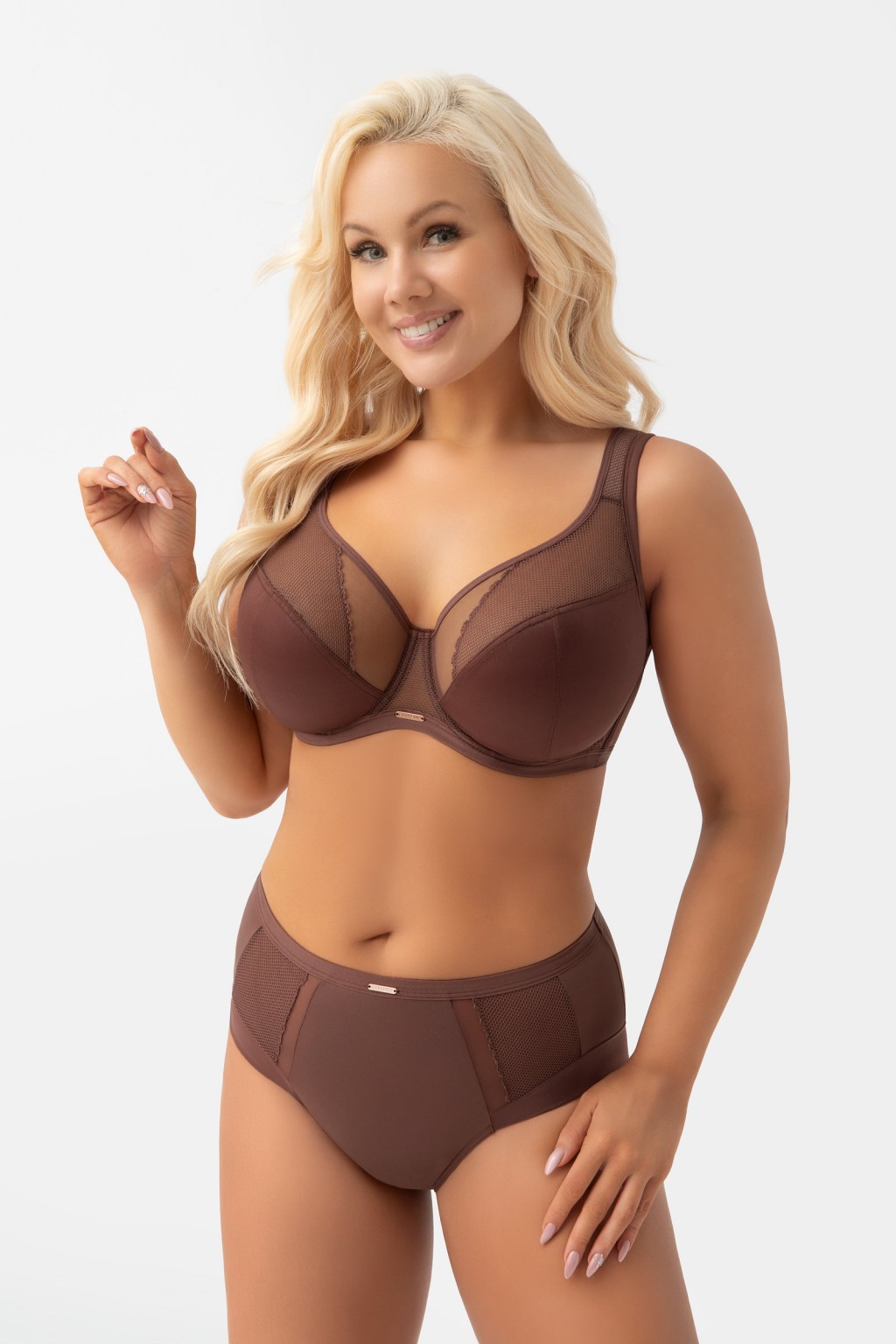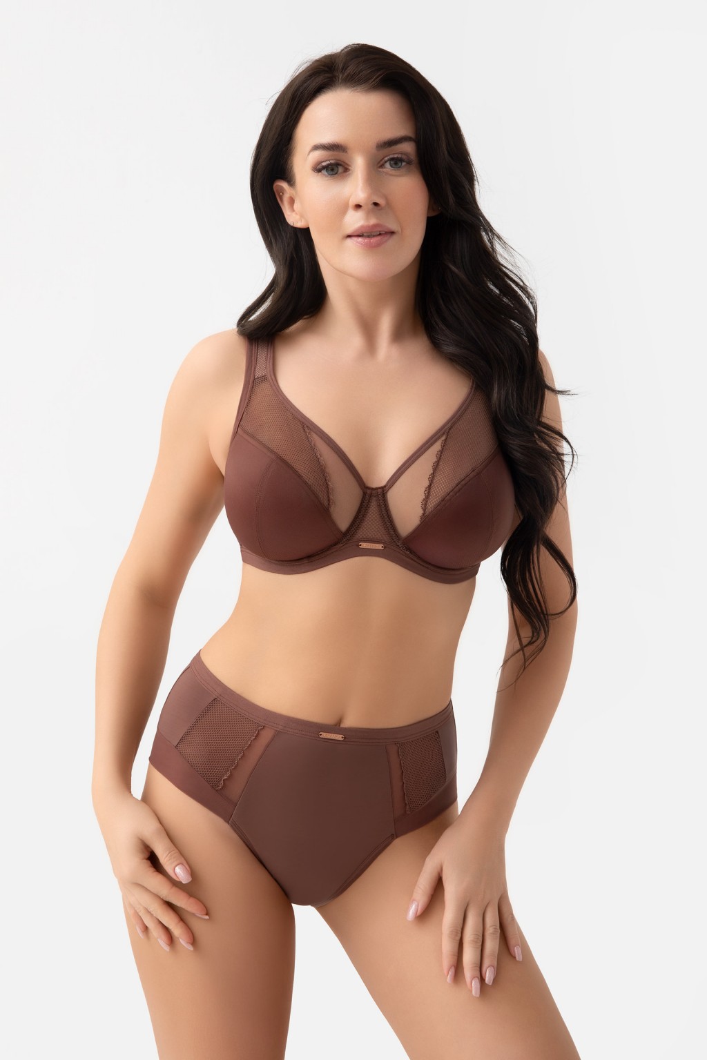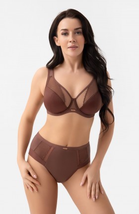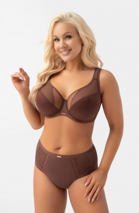 LUISSE FIGI Wykonane z połączenia kryjącej mikrofibry oraz efektownych wstawek z tiulu elastycznego i koronki. Wyjątkowym rozwiązaniem jest nogawka wykonana z tiulu elastycznego i wykończona na gładko, dzięki czemu majtki nie odznaczają się pod ubraniem. Metalowe elementy w kolorze rose gold bez niklu – ozdobny element z nazwą marki. Model wyposażony w bawełniany kroczek.