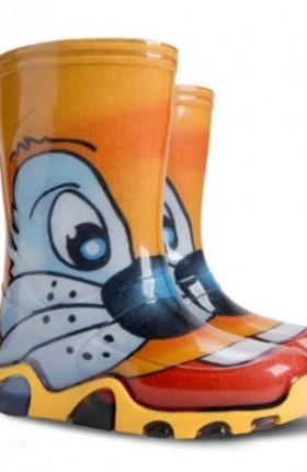 Obuwie deszczowe dla dzieci, wykonane z materiału PVC Phtalate Free (bezftalanowe PVC). Obuwie nie zawiera metali ciężkich tj. kadm, nikiel, ołów. Obuwie wyposażone jest w element odblaskowy. Idealne w drodze do szkoły czy też podczas zabawy na podwórku.