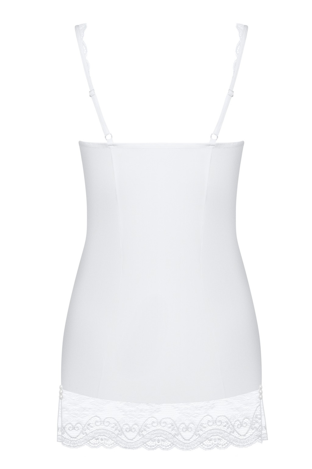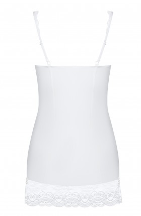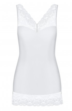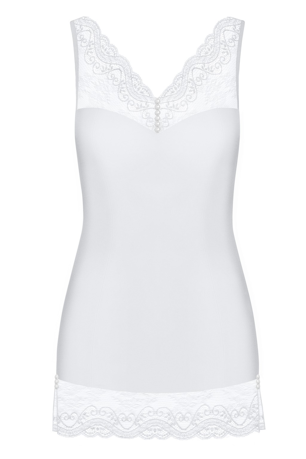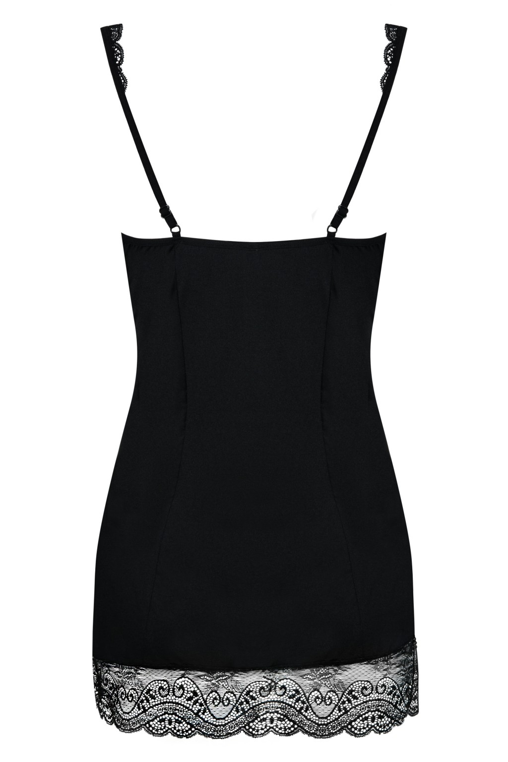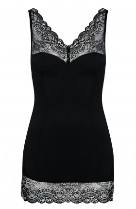Wyjątkowo kobieca koszulka z błyszczącymi zdobieniami, koronkowy przód pięknie podkreśla dekolt, regulowane ramiączka. Gwarancja perfekcyjnego dopasowania, prosty, nieograniczający ruchów krój. Pełna wygoda i komfort noszenia, rozcięcie na biodrze i koronka na dole koszulki. Detale pełne seksapilu, błyszczące kamyczki na dekolcie i dole sukienki. Szczegóły, które pokocha każda kobieta. W komplecie gładkie, czarne stringi. Delikatna, przyjemna w dotyku tkanina.