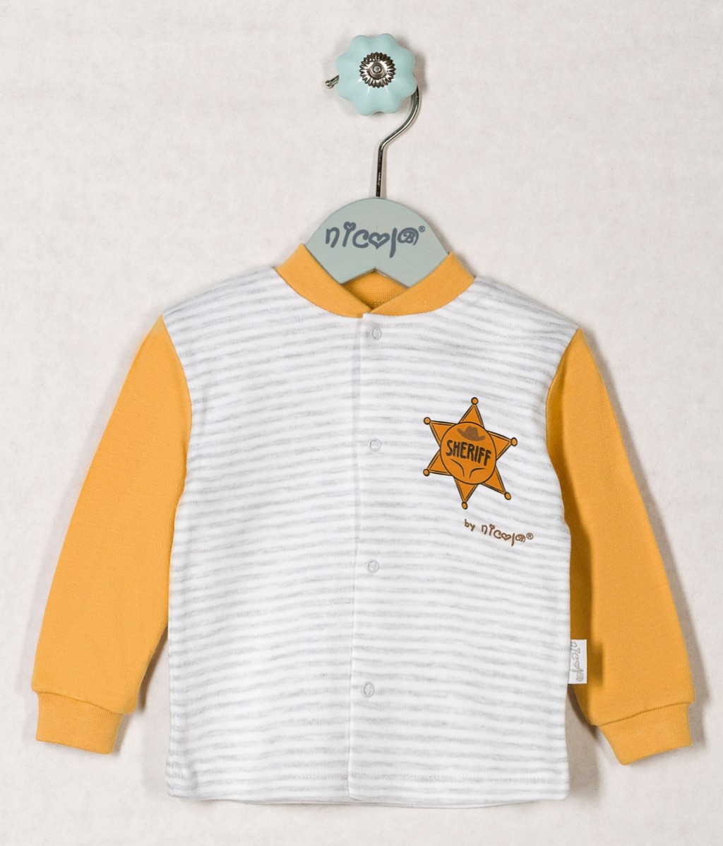 Dziecięcy kaftanik został wykonany z wysokiej jakości bawełny. Kaftan na długi rękaw, zapinany na zatrzaski. Przód zdobi kolorowy nadruk.