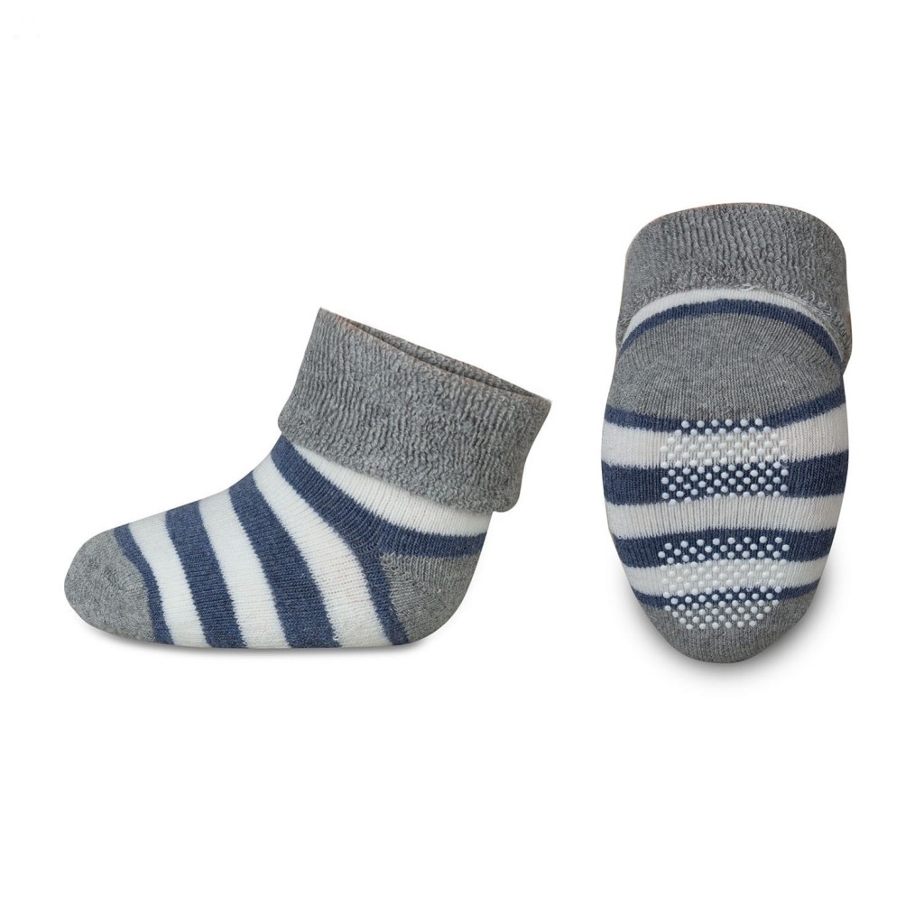 Skarpetki niemowlęce z frotką są idealne dla maluszków na chłodne dni. Kolekcja skarpet marki Risocks to połączenie kilkudziesięciu kolorów i wzorów, dlatego każdy rodzic znajdzie coś ciekawego dla swojej pociechy. Wyprodukowywane z najwyższej jakości bawełny, co zapewnia wysoki komfort noszenia dla najmłodszych. Posiadają wywijany, nieuciskający ściągacz. Od wewnętrznej strony skarpetek przyjemna frotta. Stopa antypoślizgowa.