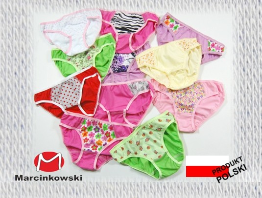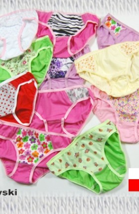Figi dziewczęce druk, 100% bawełny. Różnorodna kolorystyka. Wykończone delikatną gumokoronką. Sprzedaż całym opakowaniem. W paczce znajduje się 3 szt (mix kolorów, mix wzorów). Cena dotyczy 1 szt.