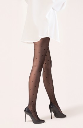 ● ozdabiają nogi drobnymi groszkami na tle cienkiej dzianiny